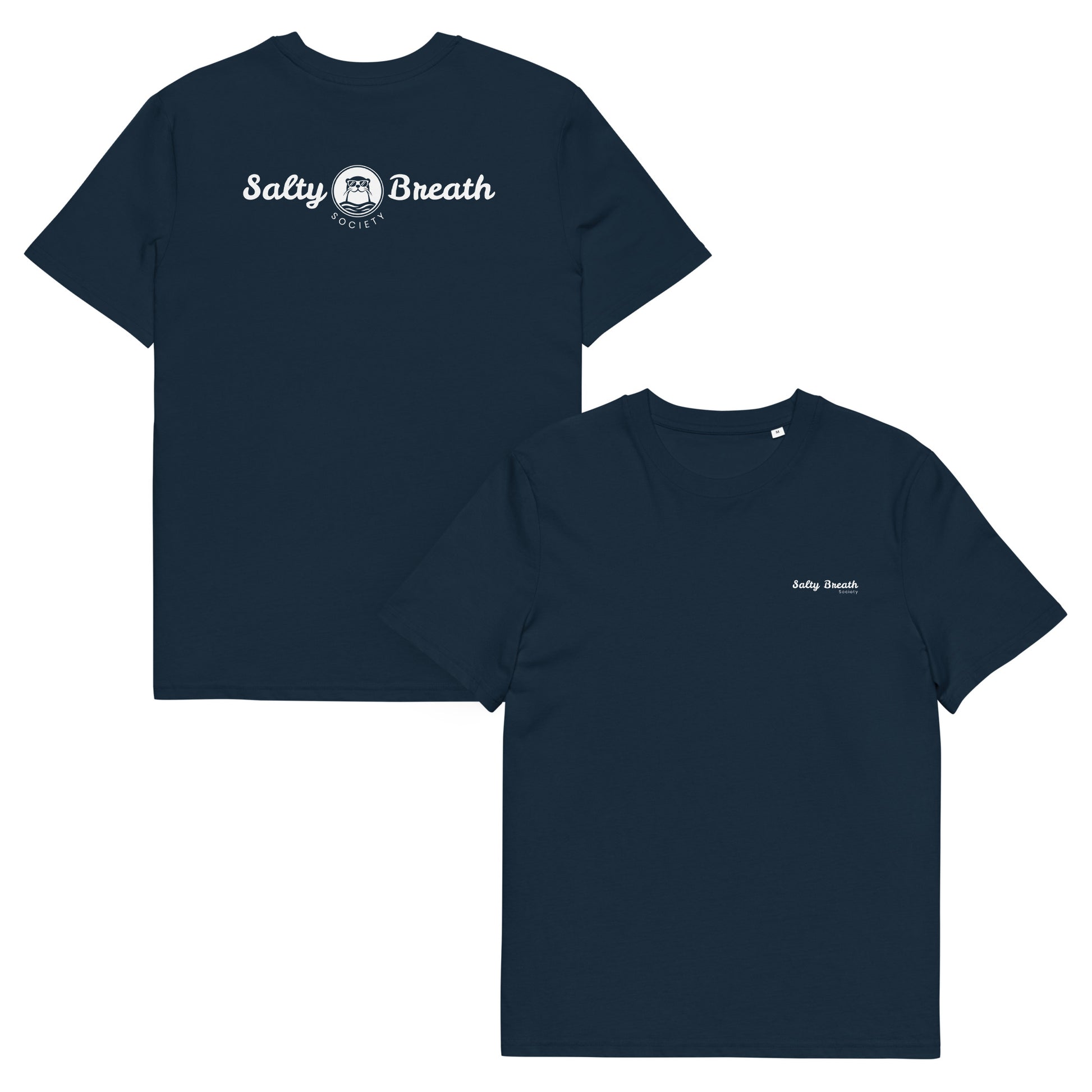 Rejoins la tribu. Simplement. Le classique. Le logo Salty Breath Society imprimé en grand dans le dos, comme un blason.